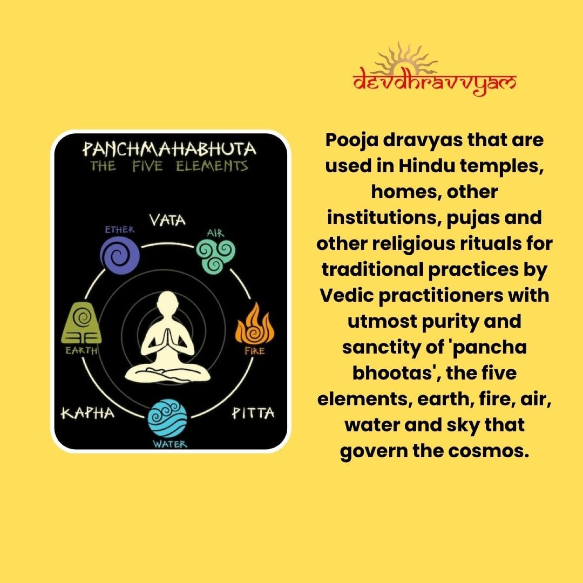 Devdravvya are created by a group of devotees committed to ensure the complete purity of the ritual offerings (Pooja dravya) used in Hindu temples, households and for various traditional Vedic rituals performed by Vedic practiotioners. Devdravvya are prepared based on beliefs and practices that are carried out from ancient scriptures in an eco-friendly and sustainable manner.