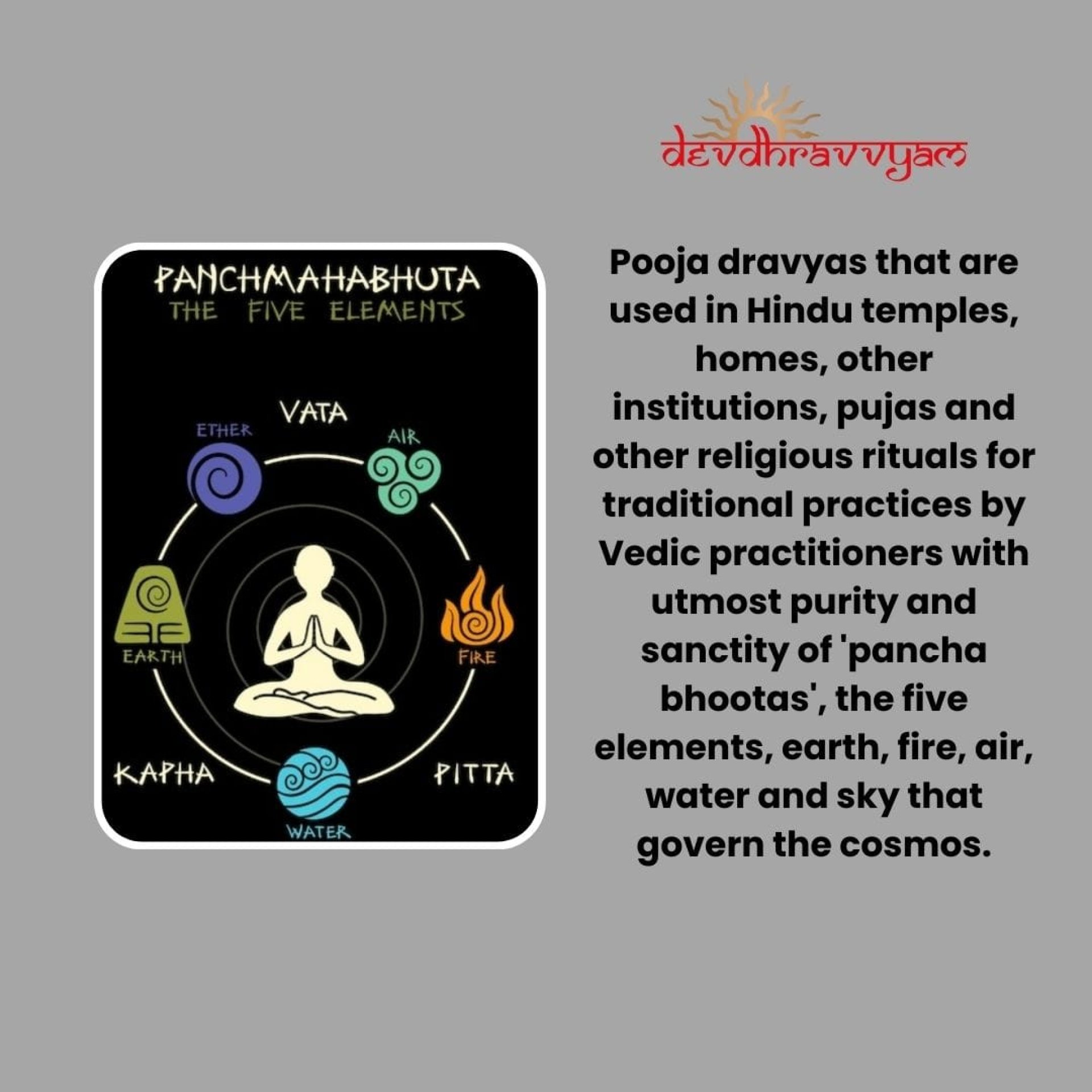 Devdravvya are created by a group of devotees committed to ensure the complete purity of the ritual offerings (Pooja dravya) used in Hindu temples, households and for various traditional Vedic rituals performed by Vedic practiotioners. Devdravvya are prepared based on beliefs and practices that are carried out from ancient scriptures in an eco-friendly and sustainable manner.